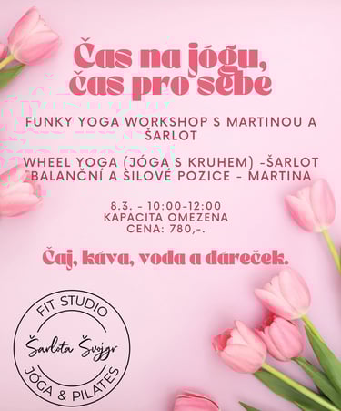 Čeká Vás: flow s wheelem (kruh na jógu), zahřejeme tělo a aktivujeme hluboký stabilizační systém, poté si vyzkoušíte nejrůznější balanční a inverzní pozice, na závěr workshopu se společně protáhneme a uvolníme tělo opět s wheelem.